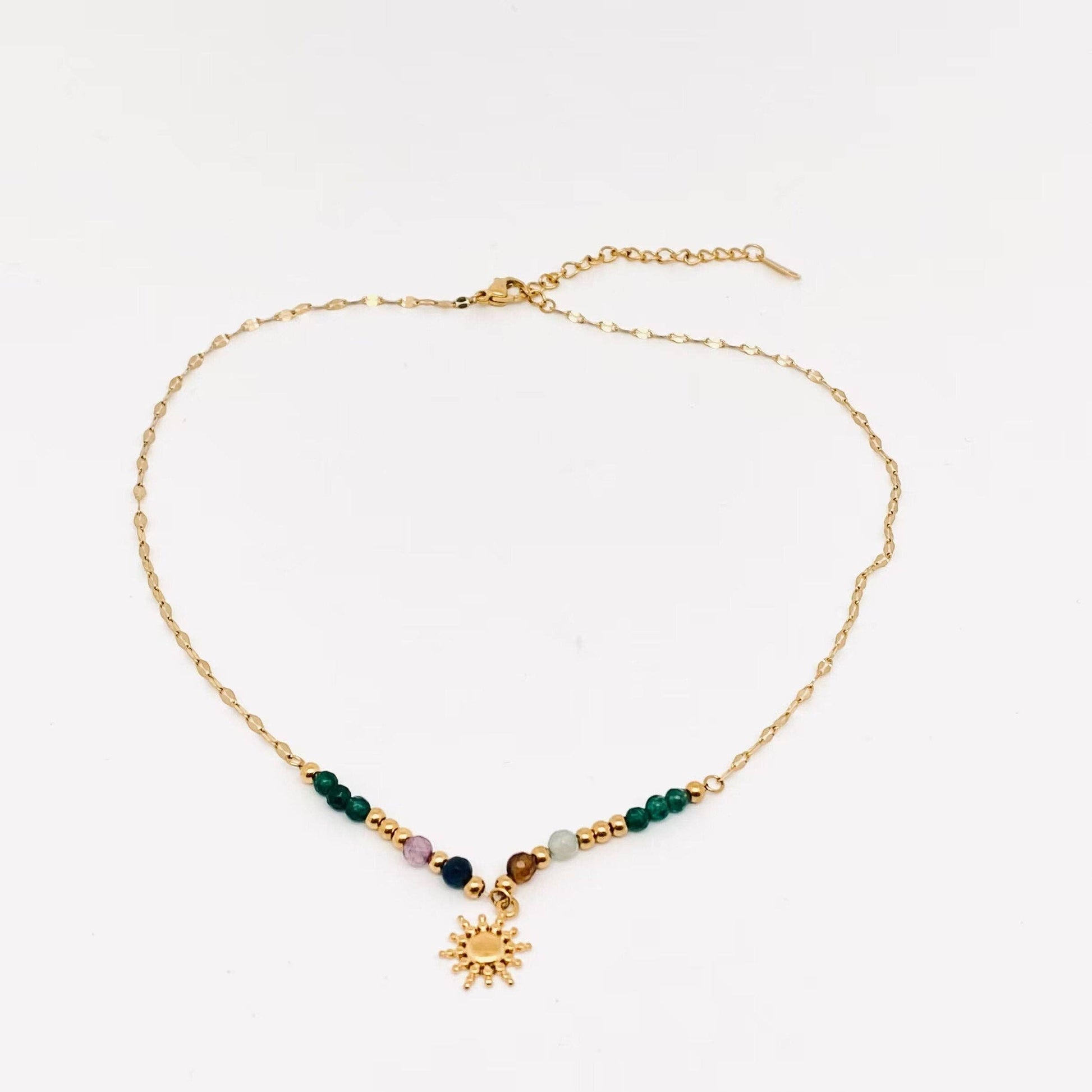 Stone Beads 18 K Gold Plated Sun Pendant Necklace - Fgs/Cs